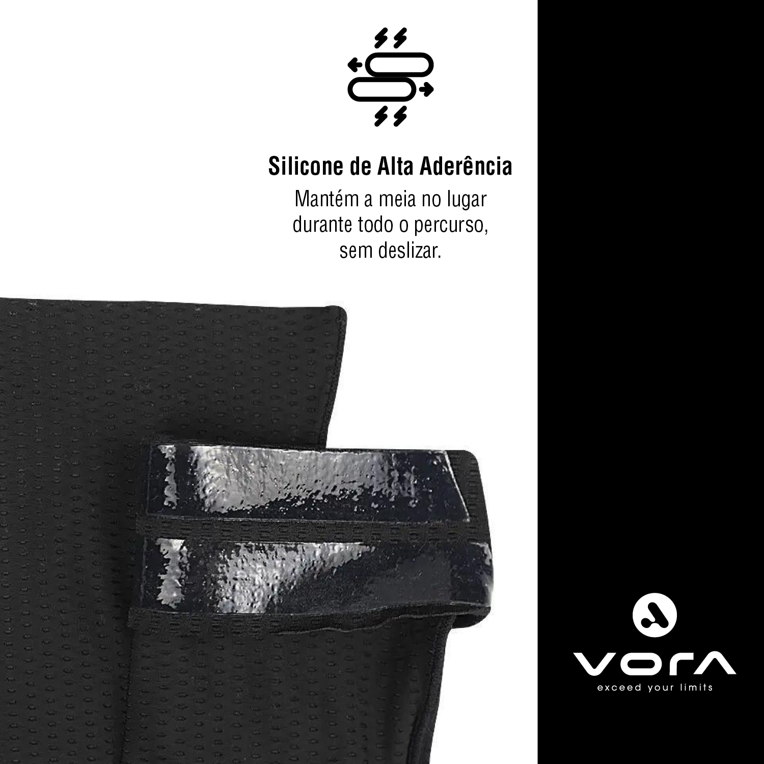 Sob os pés, um padrão 3D Dots e Flat Dots em igual proporção oferecem maior aderência na sapatilha, bem como uma micro estimulação leve, ativando o retorno venoso e retardando a fadiga.